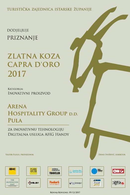 Arena Hospitality Group was a proud winner of acknowledgement for the best technological innovation unique in Croatia. More precisely, Arena Hospitality Group was awarded for Handy service, a smart mobile phone available to guests of the Park Plaza Histria, Park Plaza Belvedere, Park Plaza Arena and Park Plaza Verudela throughout their stay.